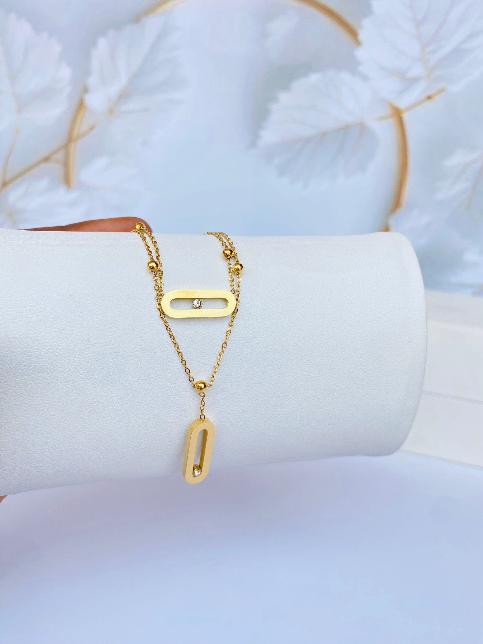 Upgrade your jewelry collection with this versatile 2-in-1 gold necklace, designed with layered chains that can be worn together or separately for effortless elegance.