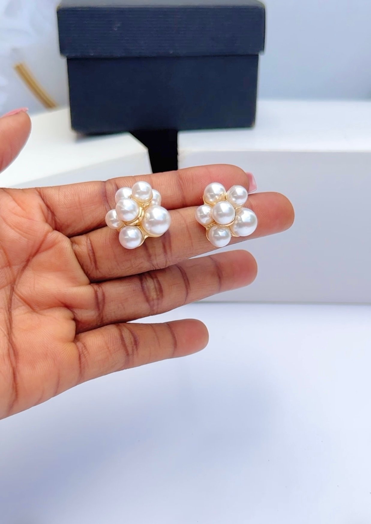 “Bring timeless elegance to your look with these Pearl Cluster Stud Earrings, featuring a delicate arrangement of luminous pearls that add a touch of sophistication to any outfit.