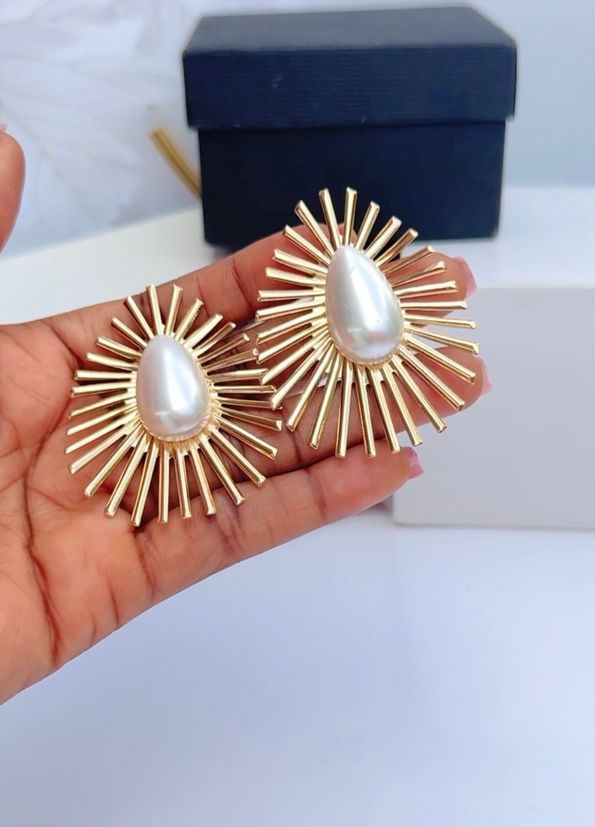 Shop elegant sunburst pearl earrings in Ghana. Classic pearl design with gold sunburst finish. Order online with fast nationwide delivery!